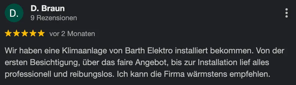 Das Schöne an Barth Elektro? Wir machen moderne Klimaanlagen in Schweinfurt schnell und zuverlässig einsatzbereit – und das begeistert sowohl Privatkunden als auch Unternehmen in der Region.